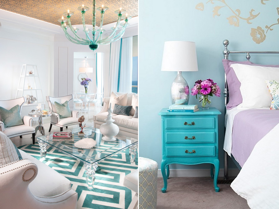 Как мы уже упоминали выше, четкого определения этого цвета нет, поэтому выберите оттенок синего или зеленого на свой вкус. При этом помните, что если окна кухни выходят на северную сторону, лучше использовать яркие оттенки бирюзового и зеленого. Для солнечной стороны подойдет сдержанный пастельный тон блеклой зелени и нежно-голубых нот.