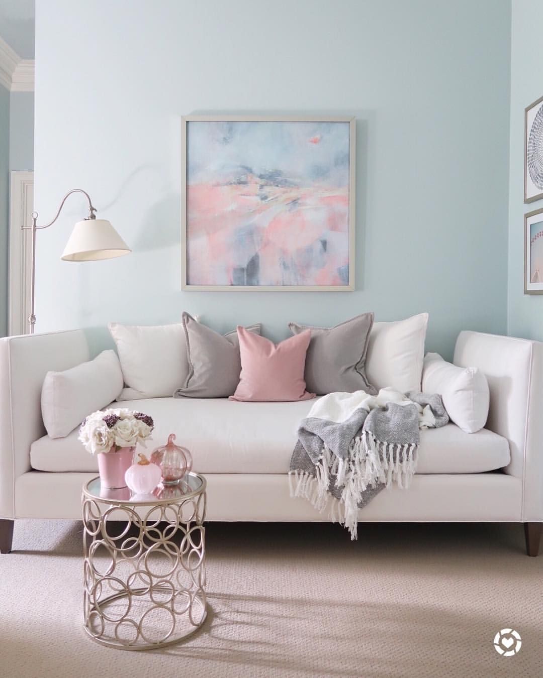 Серовато-голубая и розовая цветовая гамма для красивого дизайна интерьера в скандинавском стиле