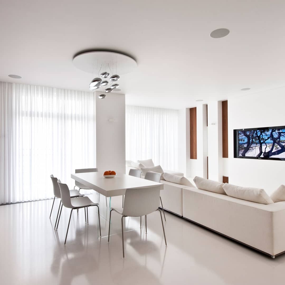Цель, пояснил он, состоит в том, чтобы создать контраст между светом в центре комнаты и по периметру и более темными промежутками между ними: «Без более темных, более тихих моментов все становится плоским и скучным. Это тонкое взаимодействие света и тьмы, которое создает привлекательность.”