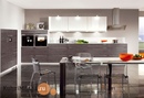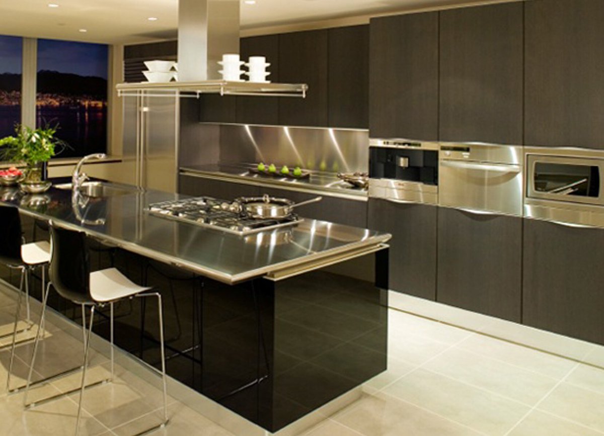 В отличие от «деревенских» направлений дизайна, таких как кантри, прованс, скандинавский или средиземноморский стили, в современном нет необходимости использовать винтажные модели. Напротив, есть смысл отдать предпочтение инновационным разработкам: здесь уместны индукционные и сенсорные панели, хромированная сталь, имитация платины, матовое напыление, затемненное стекло и блеск металла.
