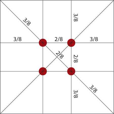 Части этого отрезка примерно равны 5/8 и 3/8 от всего отрезка. То есть, по правилу золотого сечения зрительные центры в изображении будут располагаться так: