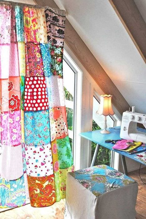Таким простым приемом можно сделать общий интерьер ярким и красивым, своими руками добавив интересную деталь из разноцветных лоскутов.