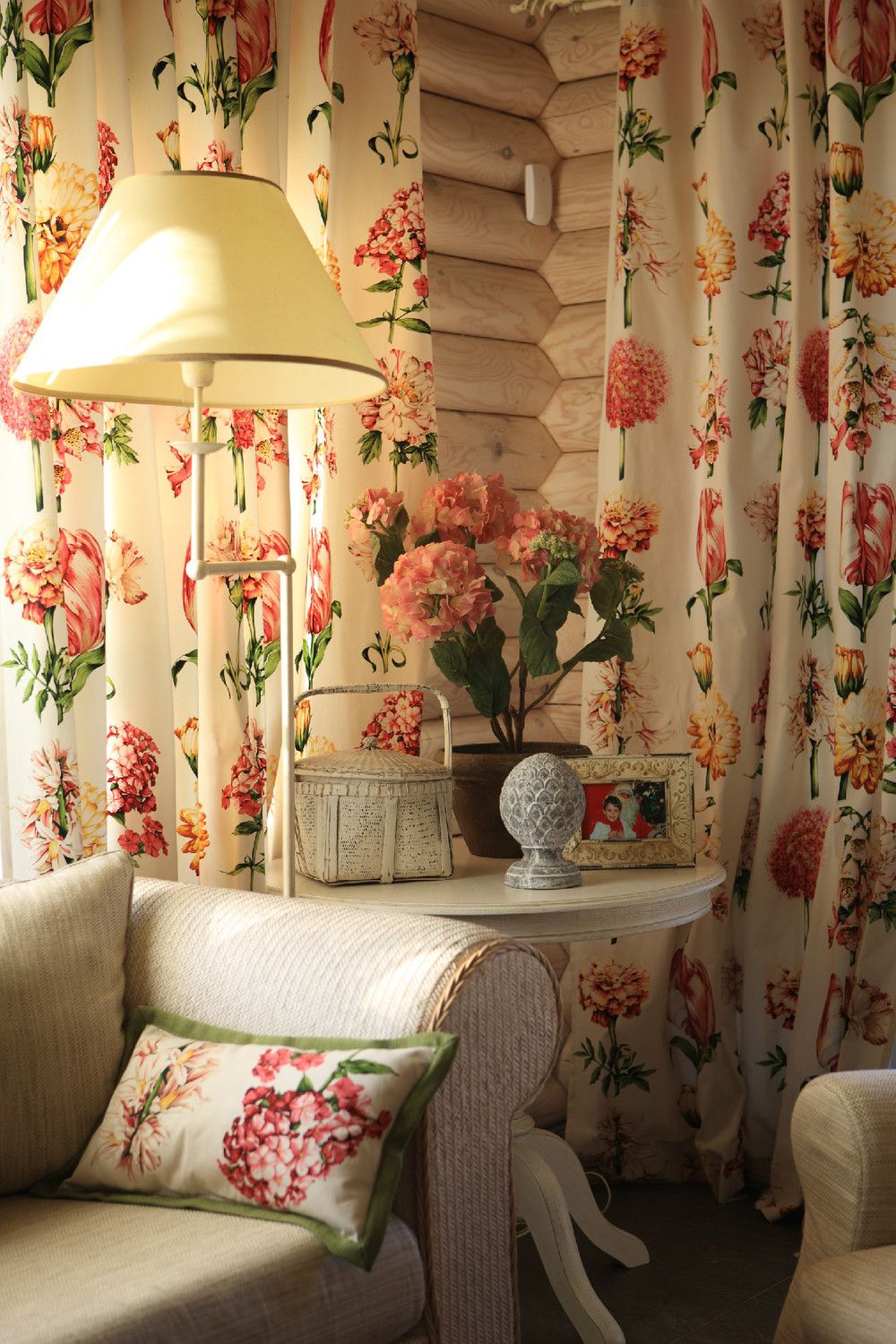В отделке дачи приветствуются цветочные орнаменты. Они могут быть только мелкими – широкоформатные изображения цветов тут недопустимы. Неплохой альтернативой станет клетка или полоска.