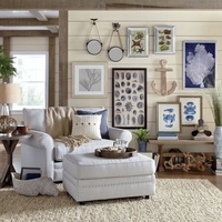 3. Прибрежный дизайн: Прибрежный стиль для тех, кто любит все, что связано с морской жизнью. От огромных диванов до морских полос, белоснежных акцентов и нежной палитры песочных оттенков, мягких голубых и зеленых тонов.