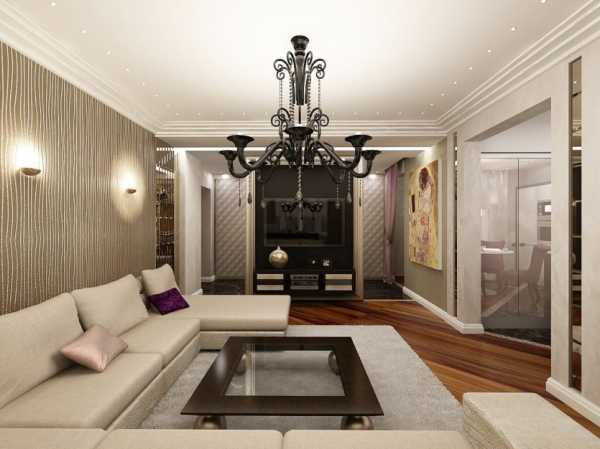 В стесненных условиях хорошим способом увеличения площади является объединение гостиной со смежными помещениями.