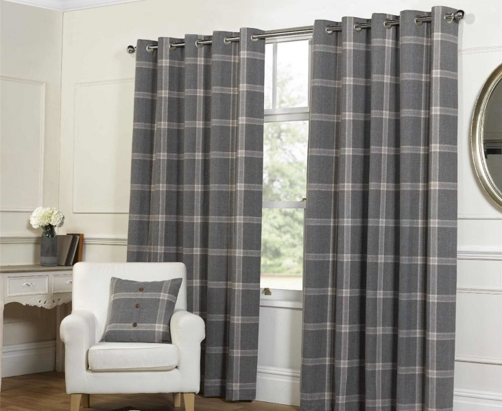 Металлические люверсы помогут создать складки в драпировке и будут дополнительным декором. Бронзовые, серебристые или хромированные – хорошо сочетаются с серым.