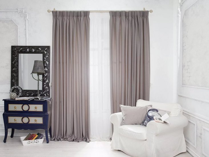 Стильные серые шторы в интерьере комнаты: идеи оформления, 70+ фото