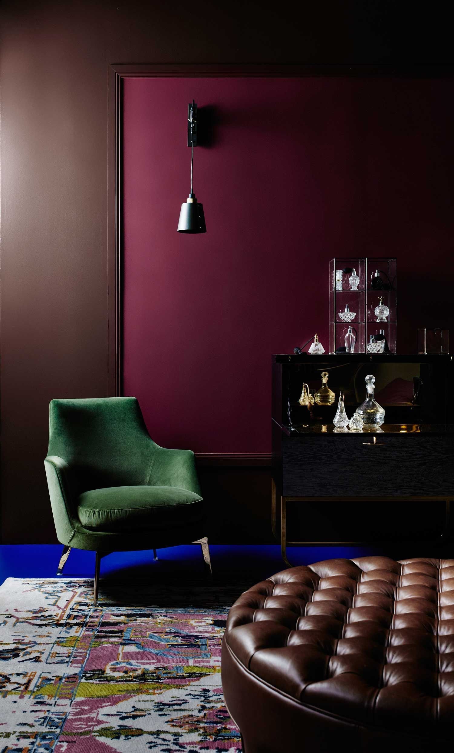 Они могут использоваться как в одном предмете интерьера, например, диване или ковре, так и в более крупных масштабах, например, акцентная стена может быть сделана в вишневых тонах.