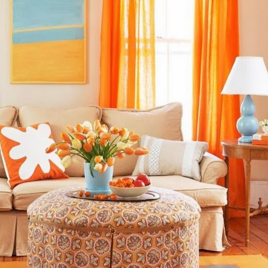 В отличие от красного, оранжевый тон не вызывает раздражения. Соединив энергию пламени и добродушие жёлтого оттенка, он может быть комфортным, тёплым и коммуникабельным. Оранжевый стимулирует работу мозга. Его можно применять в кабинете, кухне, столовой. Чаще его используют в виде акцентных предметов.