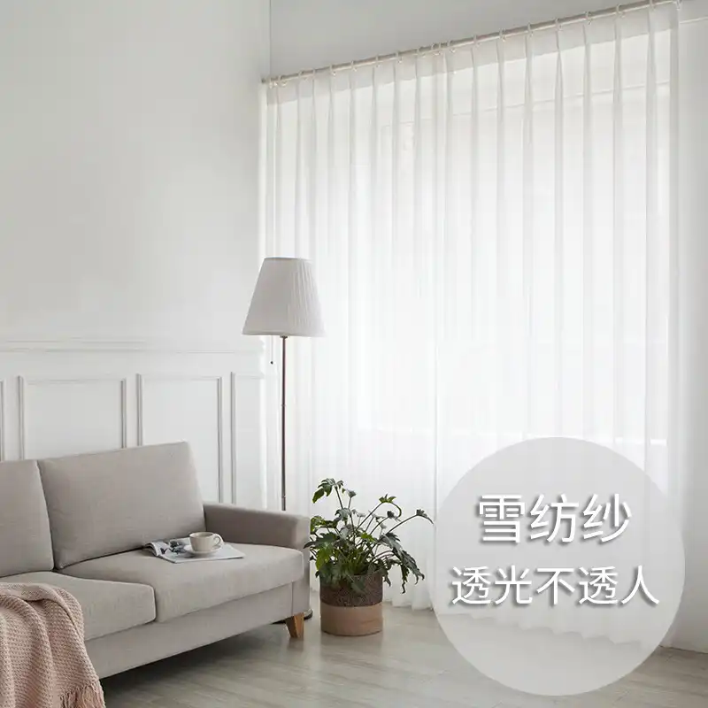 Тюль изготавливают из нитей хлопка или органзы с добавлением полиэстера (так ткань меньше мнется). На шторах нет ярко выраженных узоров и других декоративных элементов.