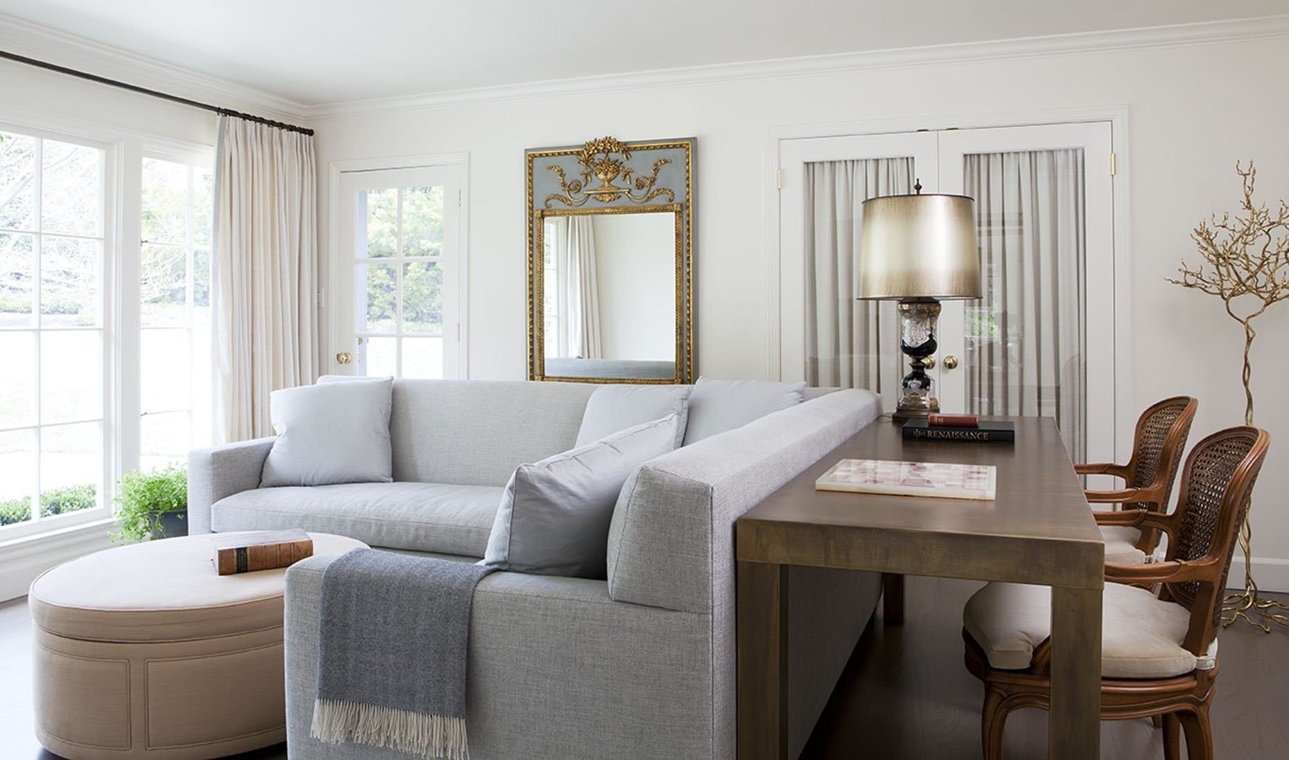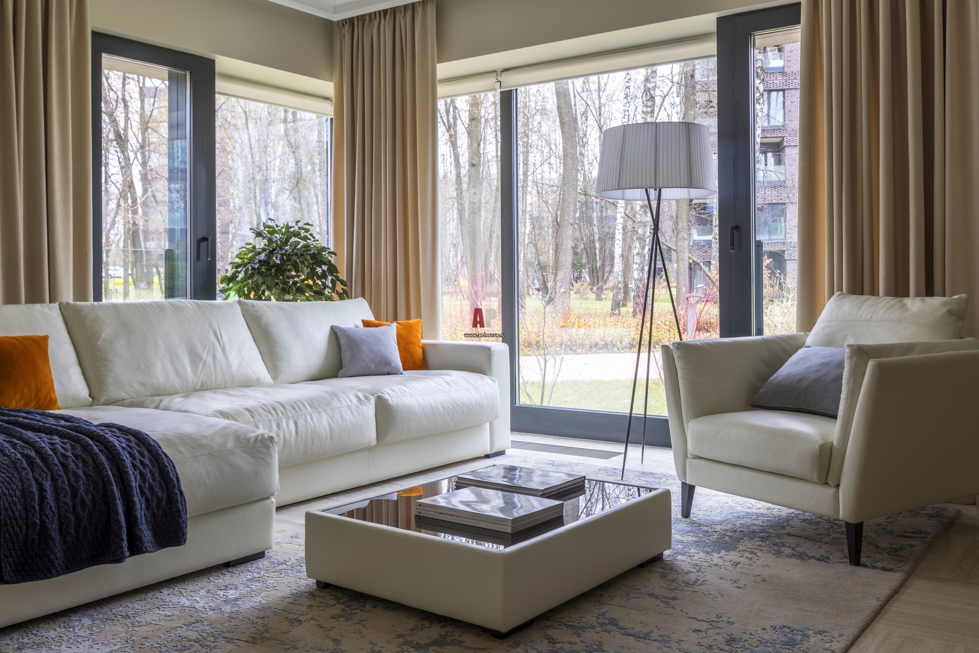 В этом случае весь интерьер будет отталкиваться от общей отправной точки, мягкой мебели. В этих ситуациях также работает принцип группировки крупных и мелких предметов – журнальный столик и ваза или диван и торшер.