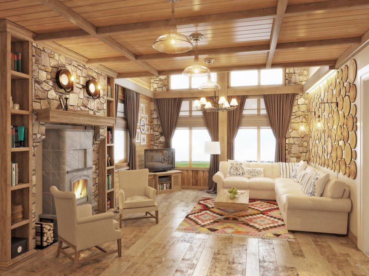 Деревянная гостиная с камином