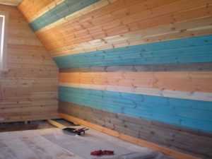 Несмотря на то что натуральное дерево имеет приятный цвет от природы, монотонная поверхность утомляет и быстро приедается. Дизайнеры советуют красить вагонку, добавляя различные оттенки. Таким способом достигается эффект старения дерева, а также расставляются необходимые акценты. Подчас достаточно всего двух оттенков, чтобы поверхность деревянной стены заиграла.