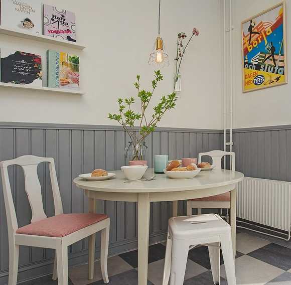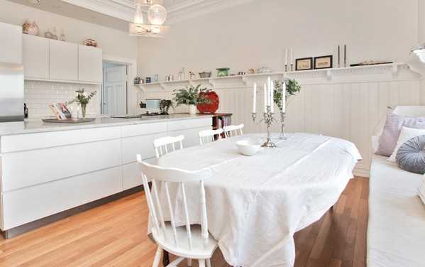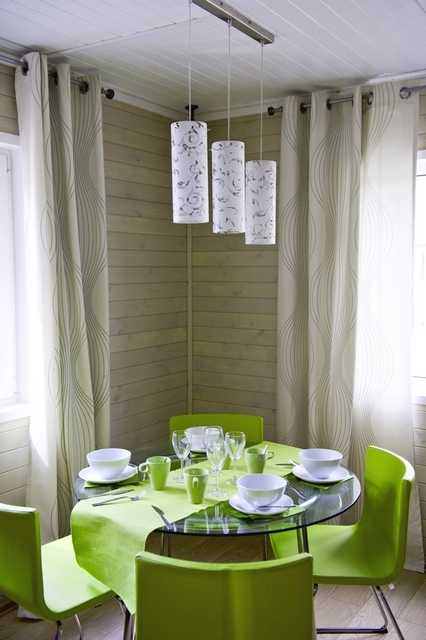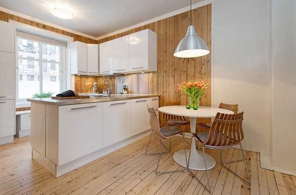 Можно обшить ею все стены помещения или выделить только обеденную зону. Последний вариант является наиболее распространенным.