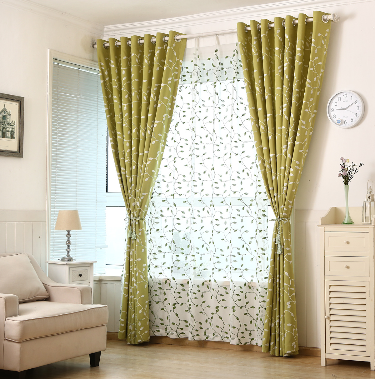 Это означает, что вы можете повесить шторы из плотной ткани и «накрыть» их шторами из полупрозрачного тюля.
