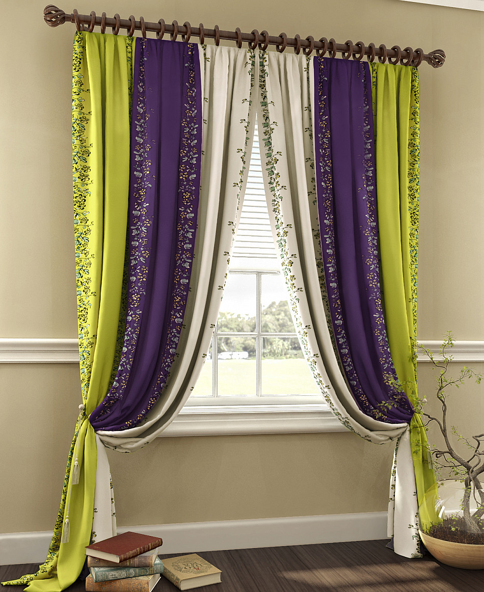 Многослойные. В них совмещаются однотонная ткань и ткань с рисунком. Применяются, в основном, в гостиной.
