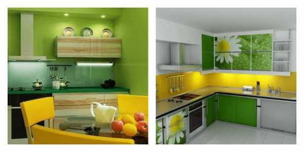 Зеленый+желтый. Салатовые оттенки зеленого в дуете с сочным желтым цветом несут заряд позитива в помещение. Скучной такая кухня точно не будет. В создании желто-зеленой кухни стоит учитывать следующий момент: нежные оттенки желтого нужно комбинировать с не менее приглушенными оттенками зеленого.