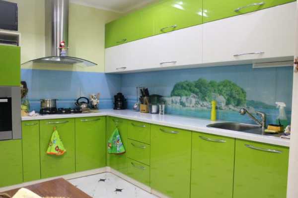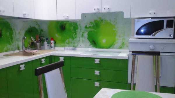 Зеленый фартук и столешница — этот вариант будет удачно смотреться при оформлении кухни в стиле «прованс», «классическом» и «средиземноморском» стиле. Рекомендуется использовать натуральные материалы — например, керамику, закаленное стекло, камень, дерево.
