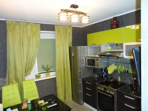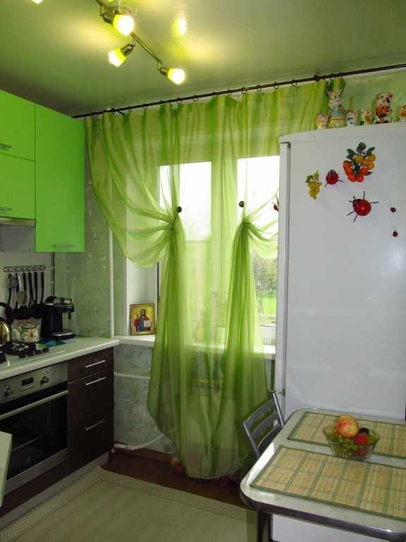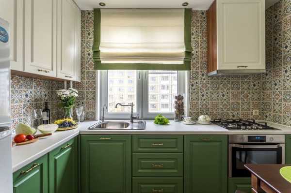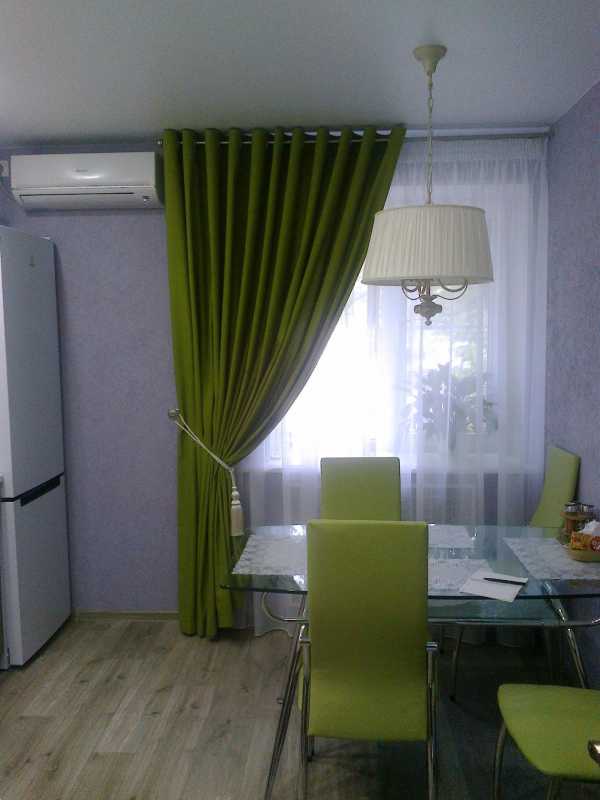 Зеленые шторы — украсят кухню в стиле «прованс», «кантри», «средиземноморский», «классический» стиль.