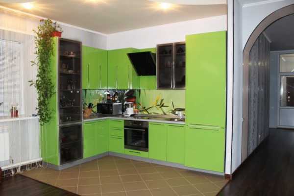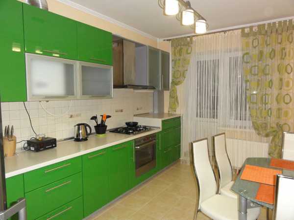 Зеленый гарнитур. Пожалуй, самым главным элементом дизайна на любой кухне является ее мебель. На сегодняшний день можно найти и выбрать гарнитур в любом стиле: от хай-тека с глянцевыми фасадами до романтичного прованса с деревянными шкафчиками.