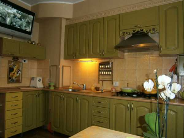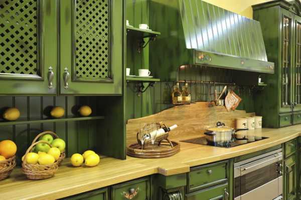 Стиль «кантри» — зеленый цвет очень подходит к данному варианту оформления кухни.