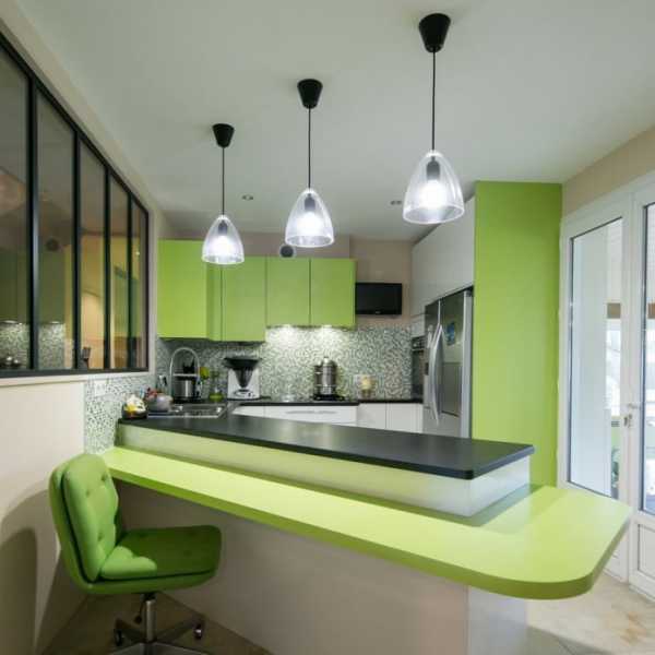 Яркие оттенки с переливами в желтый повышают настроение домочадцам. Такие цвета лучше всего походят для современного динамичного интерьера. В этом случае очень важно не переборщить с контрастом цветов, особенно черно-зеленым сочетанием. Чаще всего этот ход используется в интерьере типа хай-тек, модерн или минимализм.