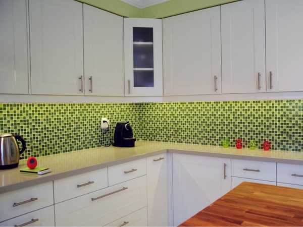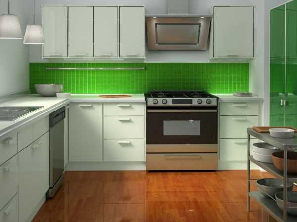 Зеленым можно сделать фартук, используя для этого керамическую плитку.