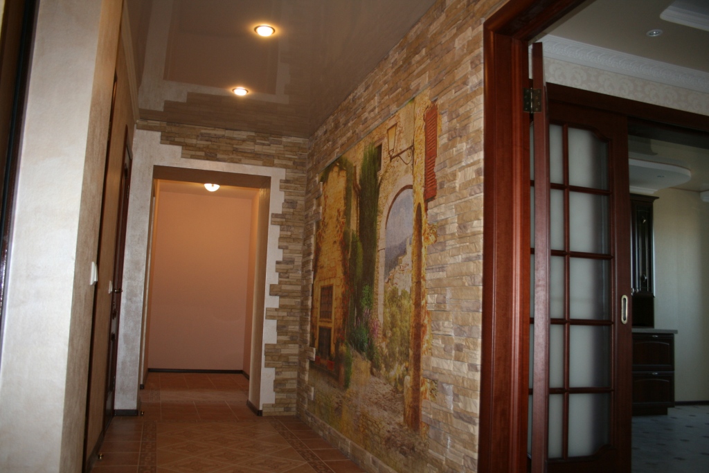От отделочных материалов, придающих помещению «тяжесть», рекомендуется отказаться. Они скрадывают свободное пространство, уменьшая размеры коридора.