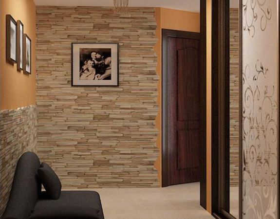 Оригинальный дизайн прихожей в хрущевке создает этот материал. Стоит он дорого, но гарантирует продолжительный эксплуатационный период и презентабельную внешность. Еще одно преимущество полотен – изготовлены они из материала натурального происхождения.