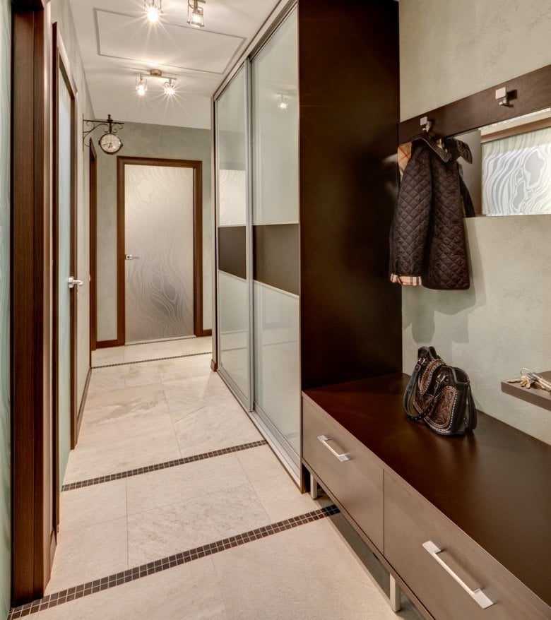 - Если прихожая и коридор узкие, то желательно разбить его на две зоны, тем самым помещения не будут казаться такими длинными, и получат завершенность.