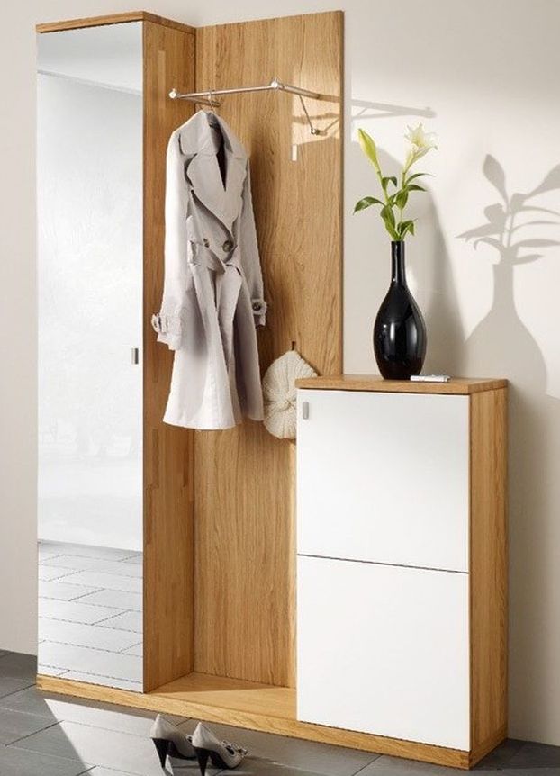 С таким комплектом легче поддерживать порядок в этой входной комнате, а вещи и обувь, которые здесь хранятся, будут содержаться в чистоте.