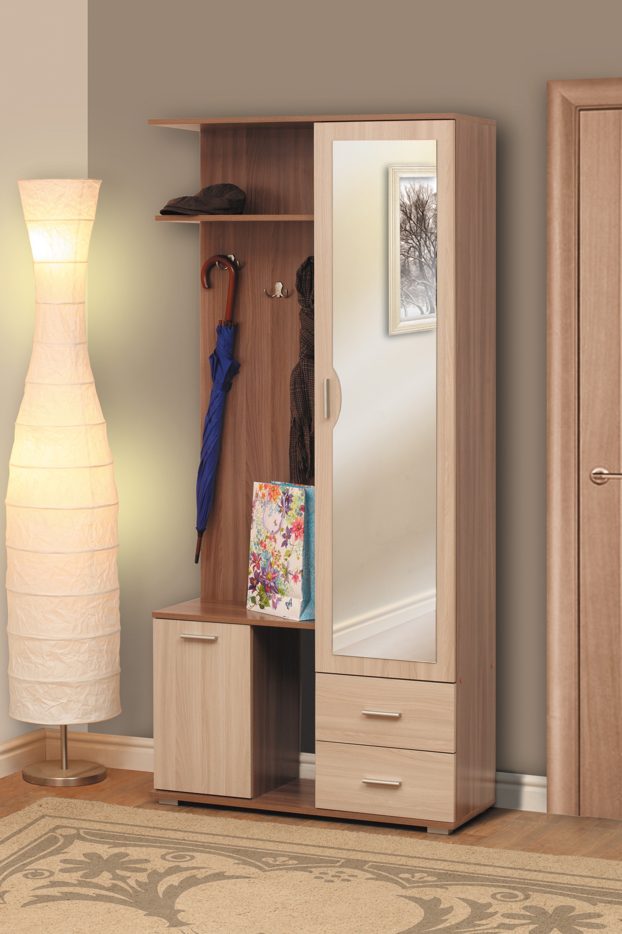 - должно соблюдаться единство мебельного гарнитура. Отсек для головных уборов, верхней одежды, зонтов и ключницы должны представлять собой комплексный элемент;