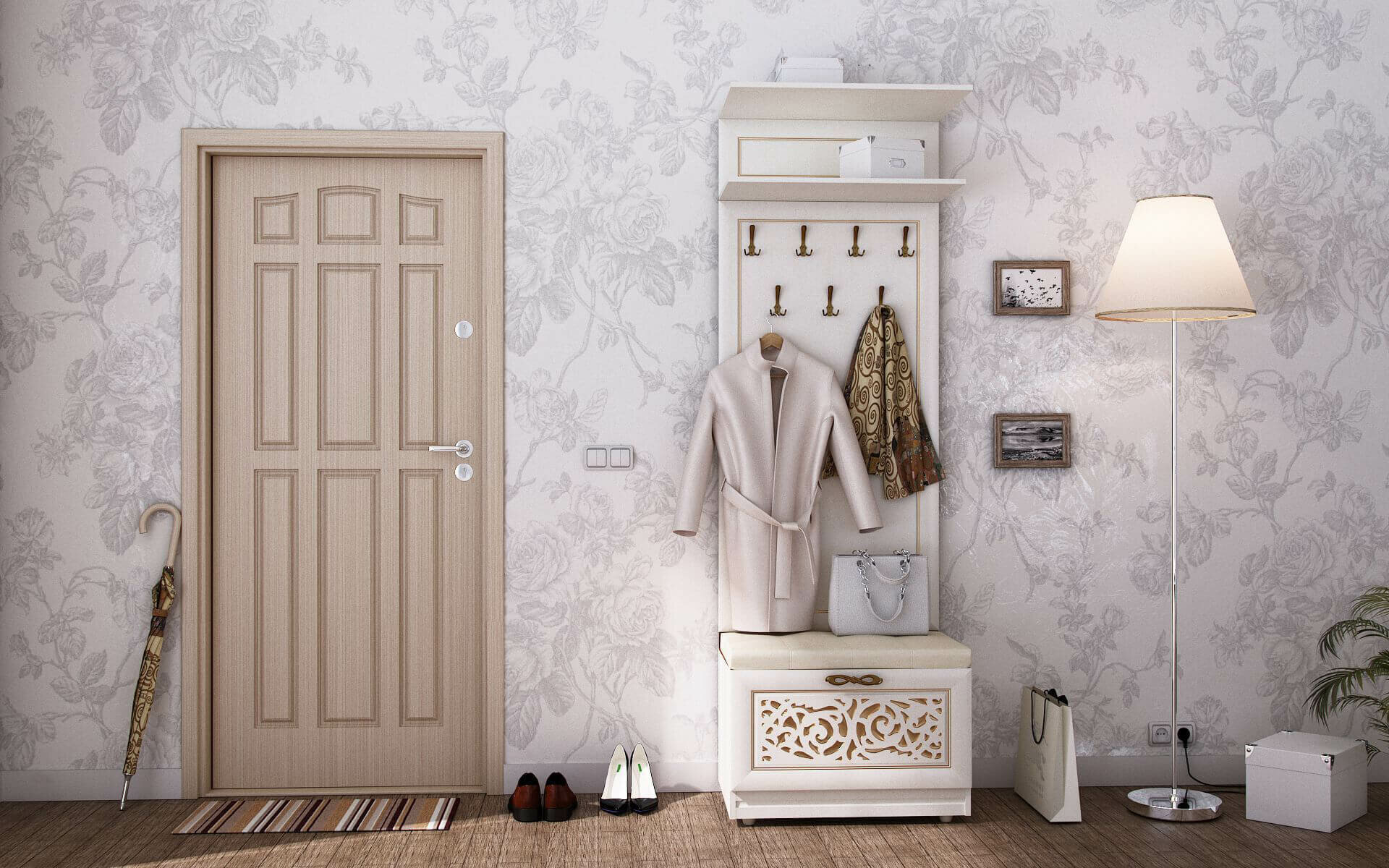 Светлый коридор: дизайн шкафа и входной двери в светлых тонах в коридоре, интерьер прихожей цвета слоновой кости и другие варианты
