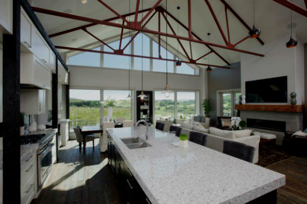 Часто архитекторы намеренно создают планировку с объединенной кухней ради увеличения спроса. Это модное течение, многие владельцы оценили достоинства такого варианта. Но придумать, как сделать потолок, задача, которая по силам людям с врожденным хорошим вкусом и профессиональным дизайнерам. Ведь здесь ставится не один вопрос: