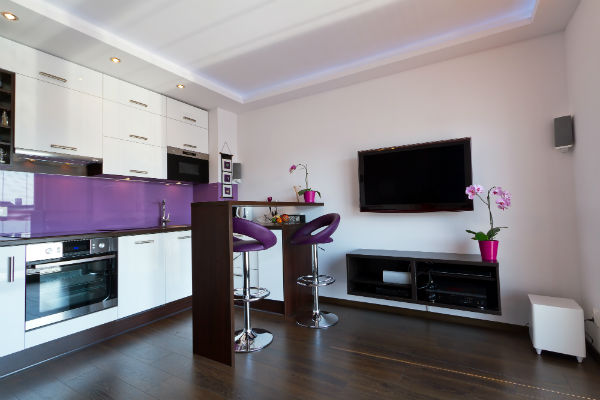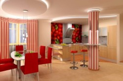 Такой вариант зонирования прекрасно подойдет для создания красивого дизайна маленькой гостиной, совмещенной с кухней (фото на специализированных сайтах это показывают), расставив правильные акценты с помощью ярких оттенков. Важно лишь помнить простые правила: