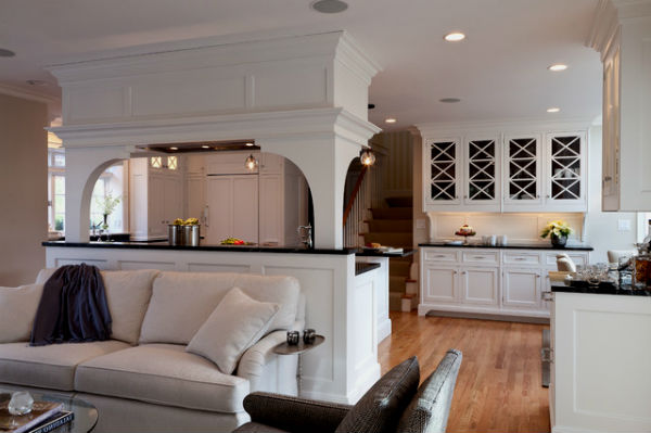 На месте демонтированной стены можно возвести арку. Ее форму определит общий дизайн кухни, совмещенной с гостиной (фото из интернета помогут выбрать подходящий вариант).