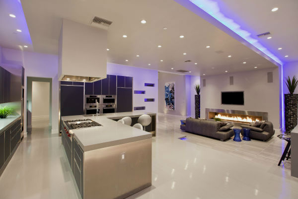 - правильно подобрав подсветку, вы сможете не только подчеркнуть функциональные области, но и получить потолок, являющийся модным трендом современности.
