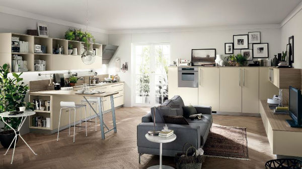 Для размышления. Приняв решение о соединении кухни и гостиной в единое целое, необходимо помнить, что такой вариант приносит вам не только выигрыш в пространстве, но и несет дополнительные проблемы. Если вы готовите много и часто, то все запахи и загрязнения из зоны кухни моментально попадают в гостиную, а значит, уборки у вас прибавится. Над плитой необходимо установить очень мощные вентиляционные системы со сменными фильтрами.