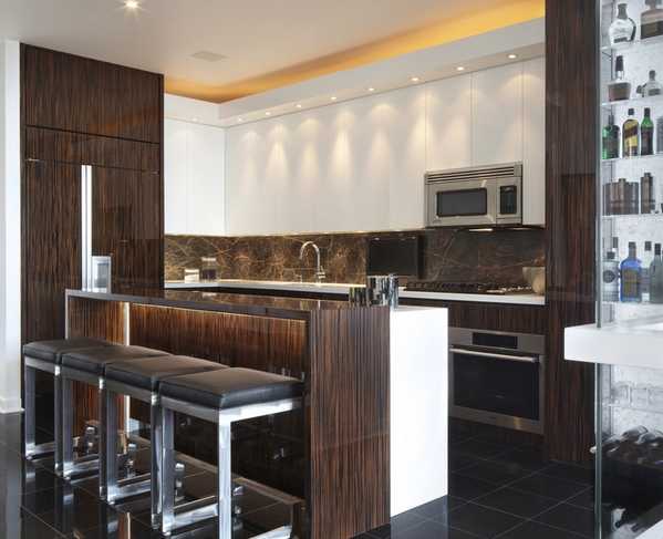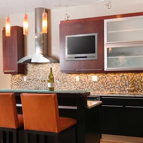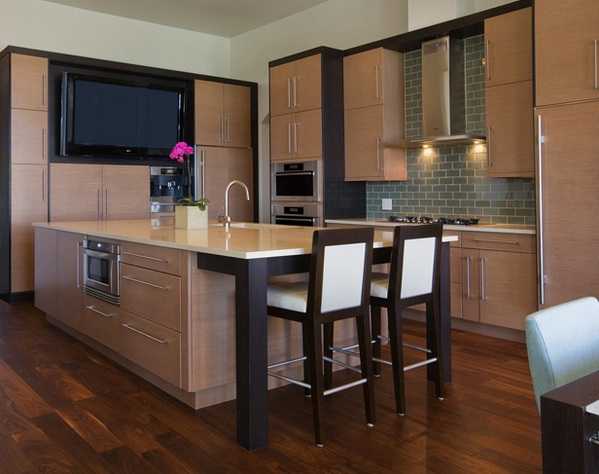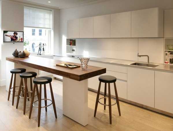 5. Возле бара или острова. Телевизор обычно располагают на стене с торца стойки.