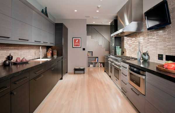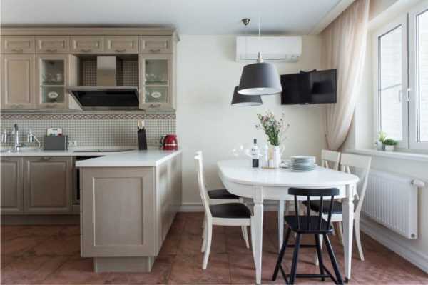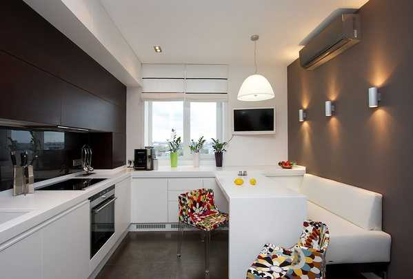 Поэтому самый оптимальный дизайн такой кухни будет выглядеть примерно так: