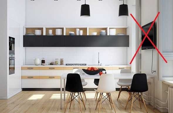 Рассмотрим места размещения, чтобы смотреть телевизор на кухне было максимально комфортно: