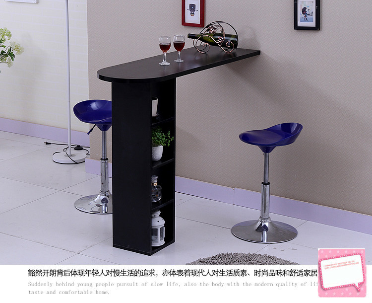 - Второй вариант, когда стойка высокая так же удобен. Во-первых, между столешницей рабочей поверхности и стойкой образуется свободное пространство, которое удобно использовать для расположения всевозможных кухонных мелочей. В эту нишу хорошо вместятся сахарница, солонка и перечница, салфетки, в общем все, что необходимо на столе во время обеда, но в тоже время, находясь снизу, эти аксессуары не будут воровать, и без того небольшое, пространство на обеденном столе.