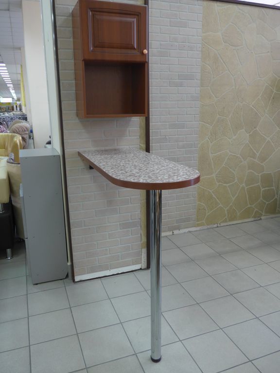 Откидная барная стойка очень удобна на малометражной кухне, так как в сложенном, точнее поднятом, состоянии совсем не занимает места