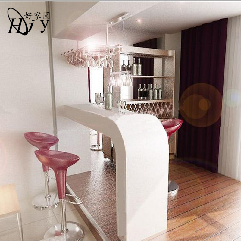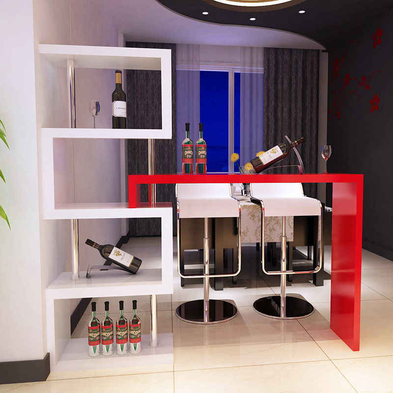 Открытая барная стойка представляет собой столешницу на хромированной ножке или другой аналогичной опоре. Основной плюс такого вида барной стойки в том, что под неё легко можно поставить ноги, а также сидеть по обе стороны стойки. А когда барная стойка не используется туда можно задвинуть барные стулья, что для маленькой кухни весьма важно.