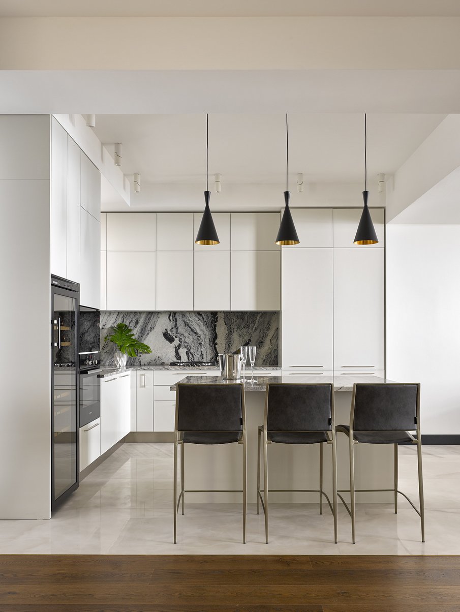 Что, если я хочу получить более сильное современное ощущение? Смешайте белое с черным. Двухцветные минималистские кухни с черно-белым оформлением становятся все более модными с каждым днем.Черный помогает разрушить монотонность белого, создавая контраст, который добавляет изысканности и современности дизайну кухни.