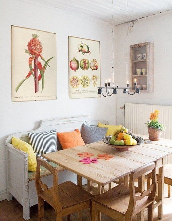 Одним словом, стена над обеденным столом – это самый настоящий плацдарм для творчества, а некоторые идеи для вдохновения вы уже получили.
