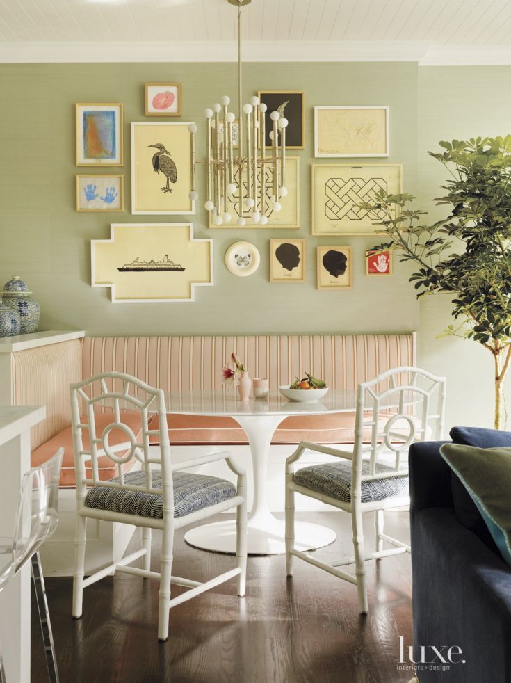 — Если ваша обеденная зона расположена посреди столовой или кухни, это не значит, что её нельзя красиво оформить. Ваши инструменты — светильники, ковры и дорожки, подушки и другой декор для стульев, салфетки под тарелки и так далее.