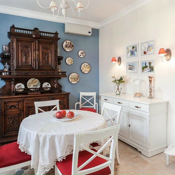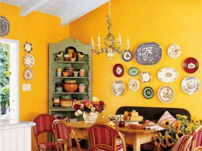 Такой вид декора идеально подойдёт для кухни в традиционном стиле — кантри, прованс, классика и др. Вы можете использовать любые понравившиеся вам тарелки и блюдца. Главное что бы они перекликались с интерьером кухни в целом и гармонировали между собой.