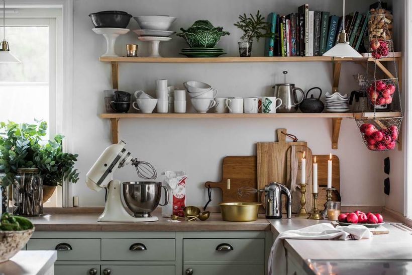 Вазочки, статуэтки, подсвечники и прочие мелочи на кухне меня раздражают – собирают на себя пыль и копоть, постоянно мешаются. Но кому-то нравится. Или их наличия требует стиль интерьера.