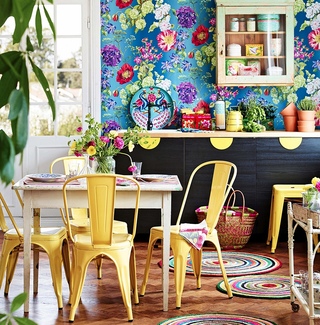 Поскольку моя цветочная стена говорит сама за себя, я хотел, чтобы остальная часть моей весенней столовой была приглушена.